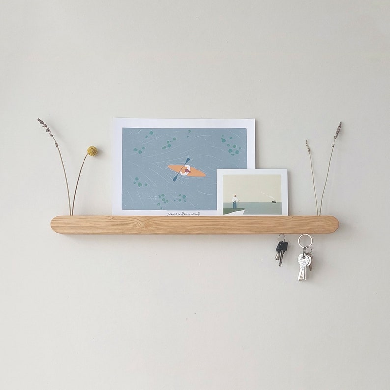 Photo Postcard Shelf, Floating Shelf, Vase for dried flowers, Entryway accent, Chestnut wood