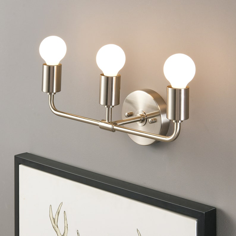3-Light Brushed Nickel Wall Sconce - Modern Minimalist Bathroom Vanity Hallway Lighting - Industrial Exposed Bulb Wall Lamp Fixture